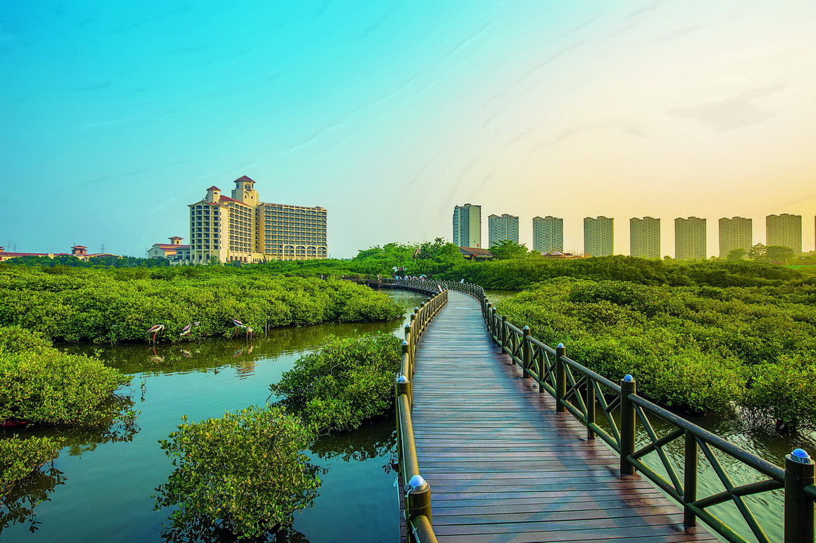 紅樹灣公園是由以當(dāng)?shù)叵∪奔t樹林濕地生態(tài)資源優(yōu)勢為依托,傾情打造一個以濕地生態(tài)性質(zhì)為主題的高端原生態(tài)旅游AAAA級景區(qū),是海南省目前為止最大型的濕地公園。該項(xiàng)目位于海南澄邁大豐鎮(zhèn)西海岸,西線高速山林出口。在本項(xiàng)目中以簡約現(xiàn)代風(fēng)情與自然生態(tài)相結(jié)合的設(shè)計(jì)風(fēng)格為主體定位,以“濕地”為景觀聯(lián)系的紐帶,結(jié)合原有地形地貌,充分運(yùn)用水系游玩、建筑、綠化及小品等多種藝術(shù)手法的自然風(fēng)情,進(jìn)而營造出具有自然、休閑特色的品味帶動銷售展示景觀。如今濕地公園開業(yè),現(xiàn)每天均有大批游客前赴觀光,已被當(dāng)?shù)卣块T列入海南省澄邁縣一日游必經(jīng)之景點(diǎn)。
